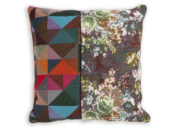 This pillow is a unique piece, handmade with recycled materials which become colorful and original textures.